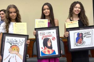 A solenidade marcou o anúncio oficial do resultado do concurso de desenho elaborado por iniciativa do GTI, com apoio da Secretaria de Educação do município, criado com a finalidade de alertar a sociedade para a preocupante escalada do número de casos onde mulheres são vítimas de atos de violência.