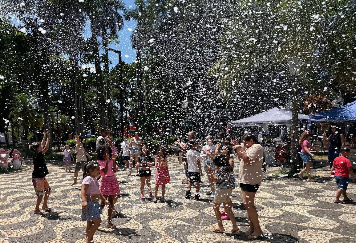 A ‘neve artificial’ acabou sendo a grande atração na quente manhã de sábado