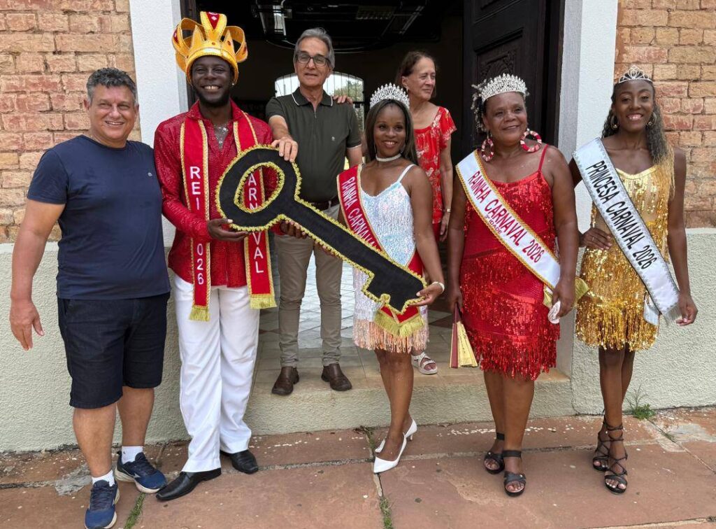 Nelson Theodoro (esquerda) prestigiou cerimonia da entrega da chave da cidade à corte do Carnaval 2026