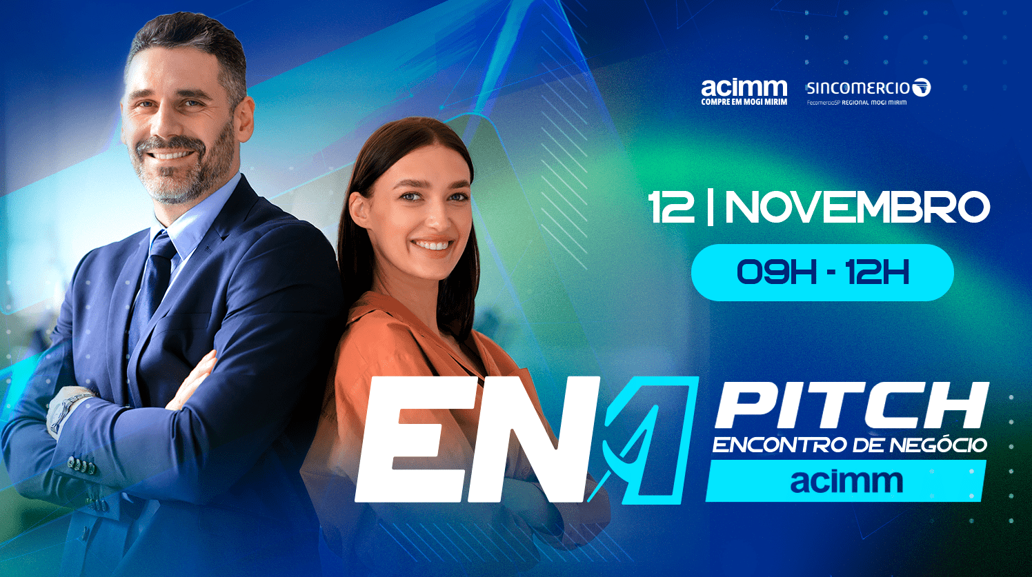Trata-se do Ena Pitch – Encontro de Negócios da ACIMM. Diferentemente do formato consagrado com a expertise e a parceria do SEBRAE -SP – que consiste em uma roda de conversas, com as pessoas se revezando de maneira circular em um ambiente especialmente preparado para isso – o Ena Pitch prevê a apresentação individual de cada participante em cima do palco do auditório.