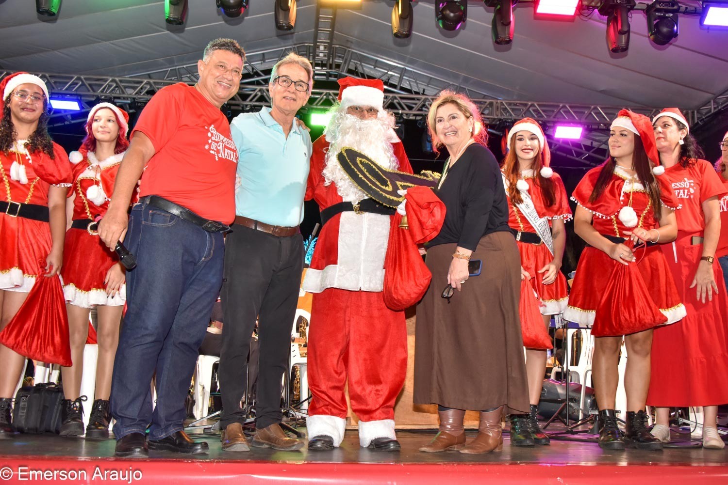 Em cima do palanque ele recebeu autoridades municipais como o prefeito Paulo Silva, que fez a entrega simbólica da chave da cidade para o personagem Papai Noel. “Foi uma parada de Natal maravilhosa”, fez questão de enfatizar. O prefeito se fez acompanhado da vice-prefeita Maria Helena, da Secretária de Educação Josélia Longatto e dos vereadores João Gasparini e Cinoê Duzzo.