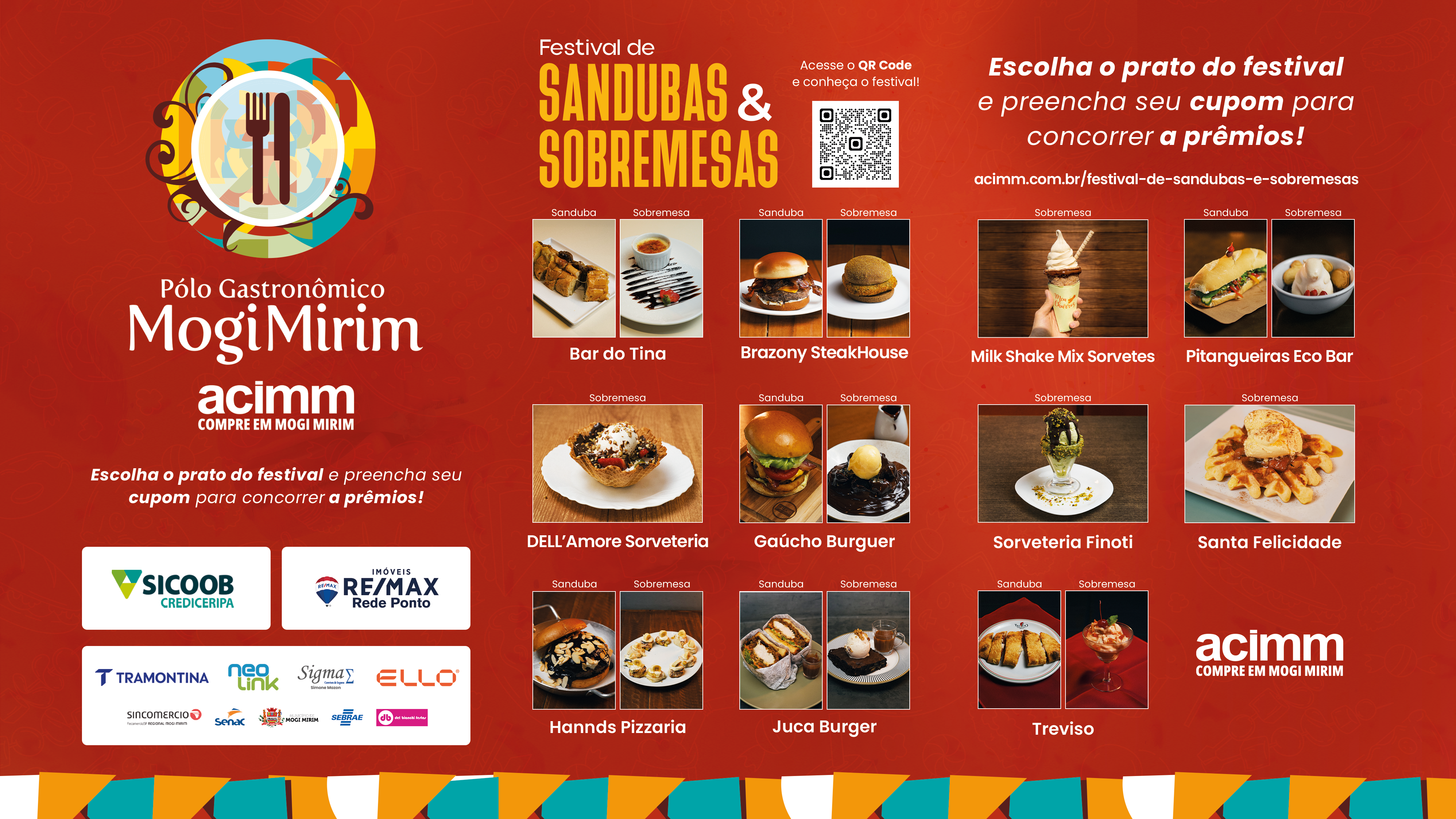 Pegando carona na iniciativa vitoriosa que envolveu a partir do último trimestre do ano passado uma relação de 10 restaurantes associados, desafiados dentro da promoção “Deu Fome- Vem Para Mogi”, a Associação Comercial (ACIMM) anuncia mais uma etapa dentro do projeto Polo Gastronômico, agora com o Festival de Sandubas e Sobremesas, que será lançado a partir do início de março.
