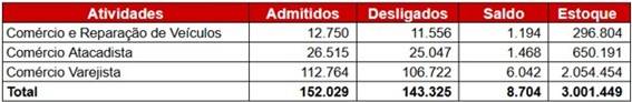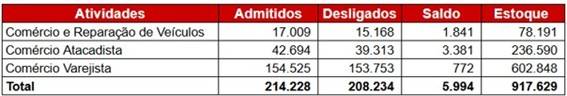 Movimentação do Emprego Celetista no Comércio do Estado de São Paulo